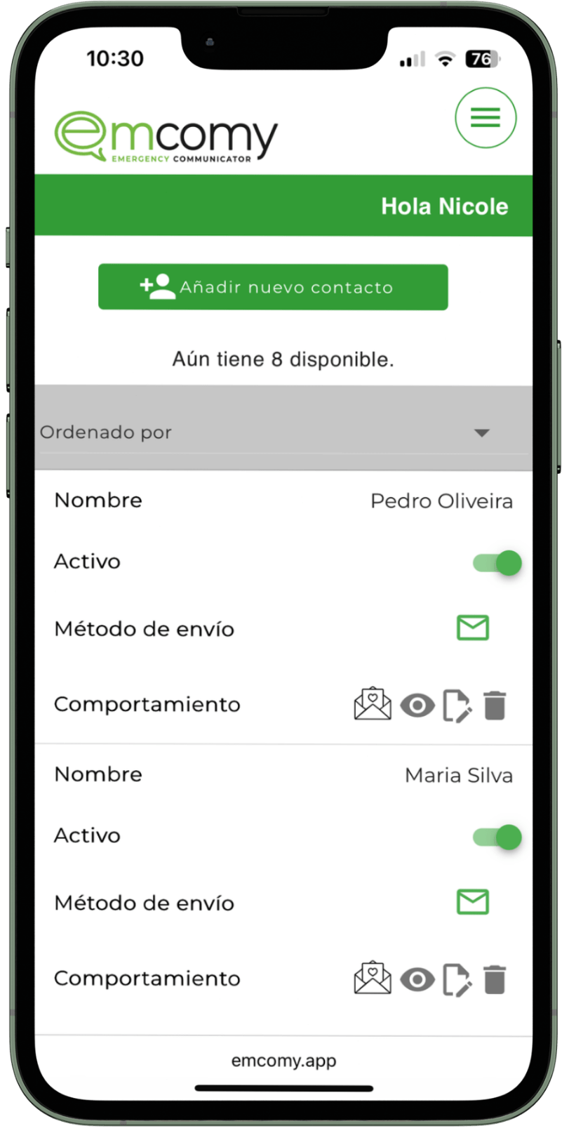 Se le informará en cuanto su contacto registrado en Emcomy tenga una emergencia